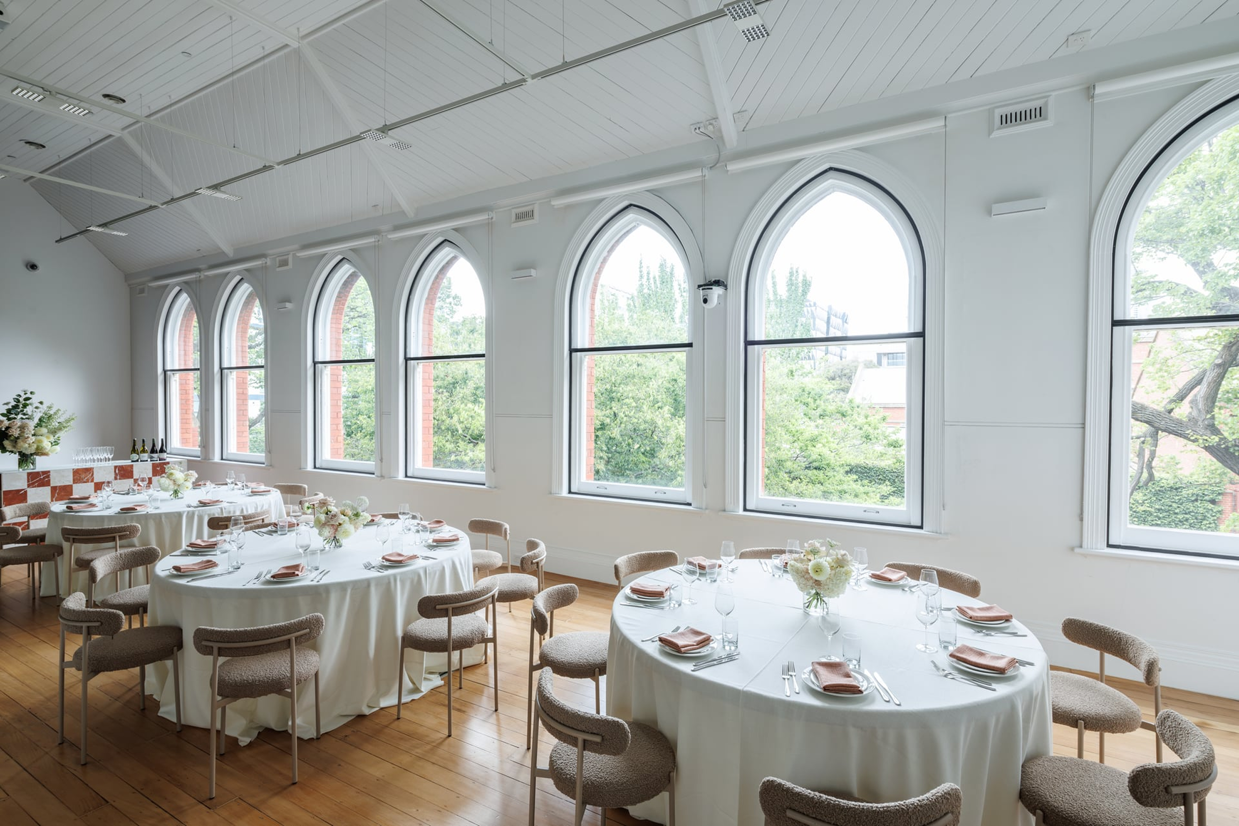 The Primrose Potter room is our premier events space catering to any style of large format event. With tree top views to the city through our heritage arched windows the space provides the perfect backdrop to your next wedding, conference or celebration.